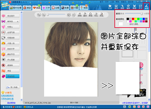 2.使用右上方的“涂鸦”画笔,把图片全部涂白。别觉的奇怪,这只是为了最后的效果做铺垫,要记得另外保存起来哦,可别覆盖掉原图。