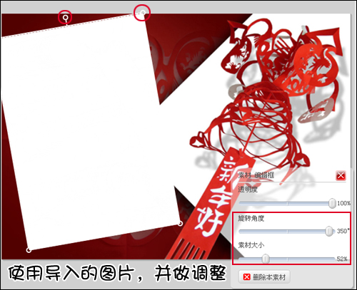 5.先把涂白后的图片导入进来,做一个大概的样式,调整大小和角度就好,等下还需要进行细节调整。