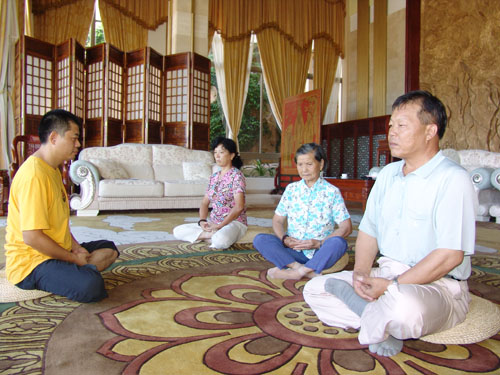在南山佛研中心,张大宗一家人和南山居士一起学习坐禅