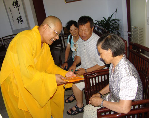 和南山寺法师交流后,南山法师赠送祈福授带
