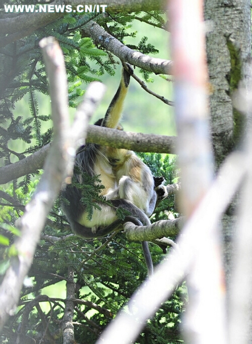 生活在我国的另外2种金丝猴——滇金丝猴和黔金丝猴的皮毛都不是金黄色的。黔金丝猴全身披着暗灰色的毛发,仅见于贵州北部的梵净山一带;滇金丝猴身上的体毛主要是灰黑色,分布于云南西北部。