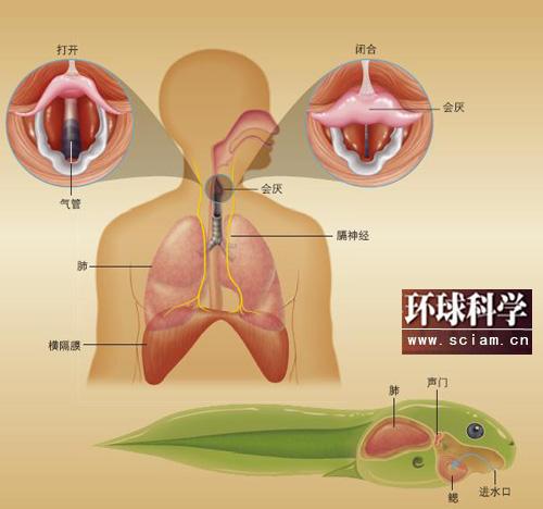 打嗝是鱼类和两栖类祖先的遗产:人类长长的呼吸神经来自于鱼类;而打嗝的原理其实就是两栖类动物在水里用腮呼吸时的工作机制。