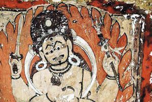 在古穆斯坦王国一个洞穴墙壁上发现的一幅13至14世纪的绘画作品,描绘了西藏佛教徒保护神玛哈嘎拉,也就是大黑天。穆斯坦洞穴内发现的文化宝藏意味着,这些地方与据信代表佛教徒精神天堂香巴拉的“隐藏山谷”有关。很多学者相信香巴拉在现实世界拥有一个与之相对应的地方。