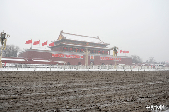 白雪覆盖下的天安门城楼。中新网记者 金硕 摄
