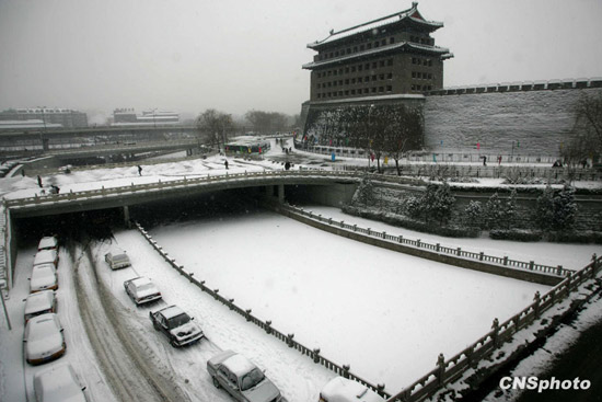 1月3日,北京城降下大雪,积雪深达6厘米,预计雪花会飘洒一整天。天气预报称,北京地区的气温有可能达到-16℃。