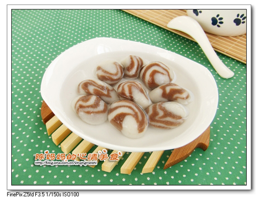 雨花石汤圆不仅构思非常巧妙,味道也是很不错的,加入了可可粉,吃起来还有点巧克力的味道呢。