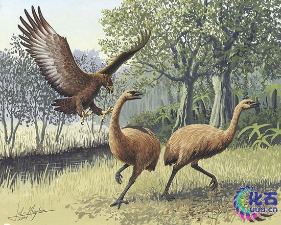 恐鸟在新西兰,好日子不知过了有多少年。那时陆地上的动物只有蝙蝠和青蛙(据近年发现的化石可知,当时岛上还有蛇与鳄鱼),还有一些其他种类的鸟类,没有大型掠食性哺乳动物。岛上的动物们没有谁敢对恐鸟不敬,当然恐鸟也不会去欺负别人。