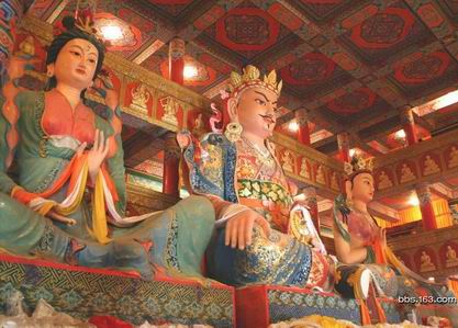 图:在松赞干布的神像两旁,总是两妃相随。