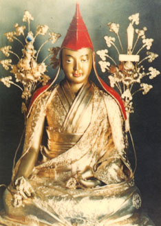 他也曾亲见一发母;在浓烟中只见一发、一眼、一齿、一乳的一发母在听他的指示,之后即融入他的脐处,拙火阿喜里面。也曾亲见大护法贝噶王骑大象来到宗萨寺,然后将象系在门口,自己徒步入寺见他,向他顶礼并聆听吩咐。