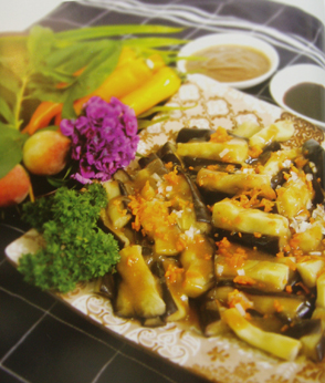 2.把所有调味料混合为酱汁,(依照个人口味添加分量)淋在茄子上拌匀即可。