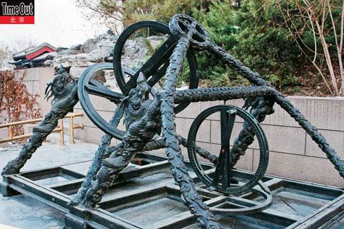 而这位元代“水利部长”后来也成了当朝的“科技部长”和“国土资源部长”。在院中,陈列着郭守敬发明的各种天文仪器。虽然这些物件今天看起来有些粗笨,但在当年可算得上是最先进的星空定位系统。双龙盘绕的灵台水浑,以水为动力,是表现天空中星辰周转运动的天球仪。太阳、月亮的东升西落,在太空中运动的情景,都可以通过这仪器看得清清楚楚。