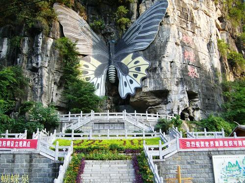 蝴蝶是会飞的花,花是梦中的蝶。在骚人墨客诗意的慧眼中,蝴蝶泉是庄周烂漫起舞的性灵之地,梦之蝶摆脱了尘世的纷扰和羁绊,飘飘乎遗世而独立,逍遥于自由的伊甸园。化蝶是人性的回归,是古往今来普天下芸芸众生最热切的梦想。郭沫若不仅留下“蝴蝶泉头蝴蝶树,蝴蝶飞来万千数,首尾联接数公尺,自树下垂疑花序”的诗句,更挥毫创作出雯姑、霞郎殉情化蝶的爱情长诗。蝴蝶泉边的蝴蝶馆,真实地再现了蝴蝶泉边蝴蝶的生态、品种以及大理的蝶文化。