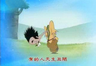 有一个人叫支离疏,他的面颊缩到了肚脐下面,肩膀比头顶还高,后脑勺朝天,而五官又都向上长,下雨天可以做蓄水之用,一般人有肋骨,他的双腿就是他的肋骨。反正那样子是极其丑陋,不堪入目的。