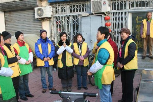 为了筹备为期三天的腊八奉粥活动,仁爱的义工从半个月前就开始策划考虑了。从元月一日开始,仁爱心栈的义工们推着粥车来到了附近的42路公交车总站和马连道的百安居广场,给过路的行人送去了温暖的腊八粥,使爱心从社区又延伸到了街头。