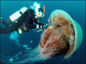 今年以来,有研究者在澳大利亚沿海也发现如同相扑运动员般大小的巨型水母。早在2007年,数据统计显示,一种名为“蓝瓶”的水母大量聚集澳大利益东部海滩,这种有“葡萄牙战舰”之称的水母,曾在2006年蜇伤过3万名游泳者。当年,在澳大利亚世界杯游泳赛期间,由于水母突然“占领”泳池,一些运动员只得被迫中途弃权。
