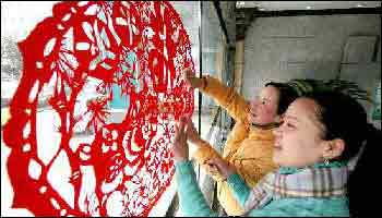 腊月二十八除了要发面以外,还要“贴花花”也就是贴年画、贴春联和贴窗花。其中贴春联的习俗源于古代的“桃符”。古人以桃木为辟邪之木,《典术》曰:“桃者,五木之精也,故压伏邪气者也。”到了五代时,后蜀君主孟昶雅好文学,他每年都命人题写桃符,成为后世春联之滥觞,而题写于桃符上的“新年纳余庆,嘉节号长春”,便成为有记载的中国历史上第一副“春联”。后来,随着造纸术的问世,才出现了以红纸代替桃木的张贴春联的习俗。