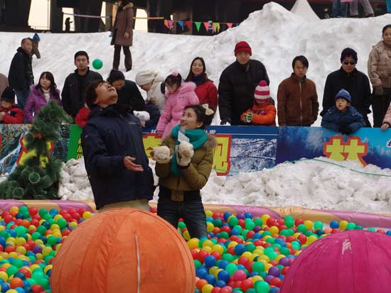 冰雪嘉年华现场正为游客提供这样的场地。在嘉年华东南侧,游客可挑战大型户外冰雪闯关类竞技游戏节目《冰雪大通关》,该活动以全民健身与公益活动相结合的形式,旨在为温哥华冬奥会预热。