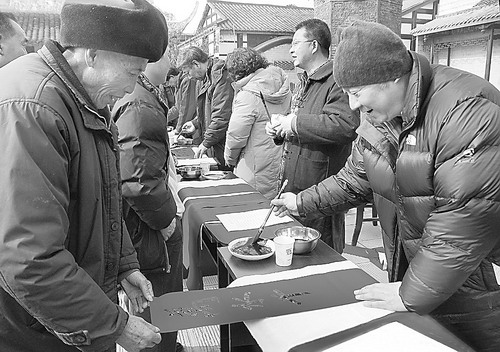 书法家在为喜迎新年的地震灾区群众写春联。 摄影/谌强