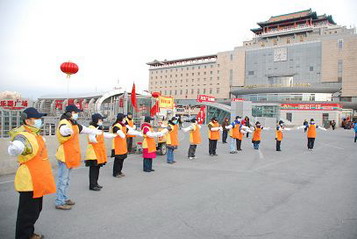 2009年2月11日,距大年初一仅两天时间,初春的北京乍暖还寒,仁爱基金会的十六位全职义工在林启泰秘书长的带领下,早晨7:30分来到西客站南广场集体奉粥,以此方式来庆祝新春佳节。虽然广场上刮着三四级的大风,但大家依然热情不减,把新春的祝福与问候带给了远行的客人。