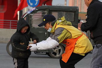 对于义工们双手奉上的八宝粥,虽然会有很多人摆手示意,甚至置之不理,但是,也有很多旅客看到“奉送爱心粥”的条幅后,驻足观看,微笑着接过志愿者手中的热粥,连声说着“谢谢”。还有少数人喝完一杯,又来领下一杯……面对不同的情况,义工们付出的不仅是早晨的时间和劳动,同样付出了极大的耐心和关爱,对于每一位来领粥的人,不管他是第一次,还是无数次的索取,义工们话语中的真诚与平和,足以让人在寒风中感受着和这粥一样的朴实与甘甜。