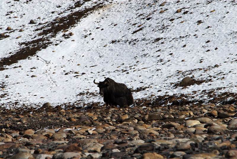 看见我们手里都拿着枪,惊恐的野牦牛绝望地哀叫着,一边努力挣扎着想站起来,但是它的两条前腿刚撑直,受了伤的后半身就被自己庞大的身体给压塌了下去,“砰”的一声跌在草地上。血从弹孔处汩汩地往外冒,野牦牛身上长长的毛被鲜血打了个湿透。