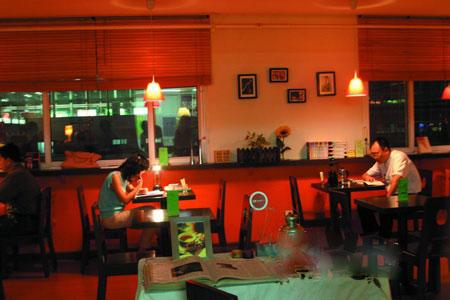 这里位子不多,每个书房也就10桌的样子,屋里的灯光很柔和,空气里伴有浓香的咖啡味道,耳边还不时地流淌着微微的轻音乐。这里可以上网,而且速度不错。