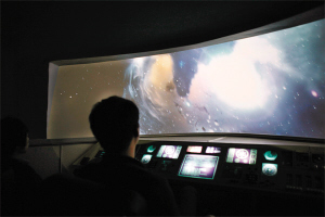 记者在“宇宙之奇”展区还体验了一回美国科幻大片中乘坐太空船的感受,坐在太空船内,在星际间穿行,飞出太阳系,进入银河系的星云。太空船自己会动,体验者还可以进行宇航方向的控制。