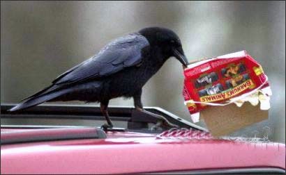 越来越多的事实表明:恺撒既不同于宠物,又有别于野生乌鸦。它的行为放荡不羁,甚至危害到我们的左邻右舍。它把邻居的钢笔、梳子、丝巾、牙刷和假牙等偷回家。它尤其钟爱牙刷,我们家的橱柜顶上堆放着它偷来的各种各样的牙刷。几乎每一个邻居都能在我们家找到自己的牙刷。所以那一年我们街坊的牙刷消费增高了,我奶奶的血压也增高了。