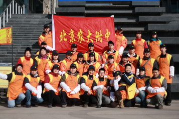 2010年2月19日清晨,来自新疆和田、喀什、哈密、伊利等地的农大附中内地高中班的十几名学生在城铁五道口站附近的广场上,为来来往往的人们送上了热腾腾的爱心粥。