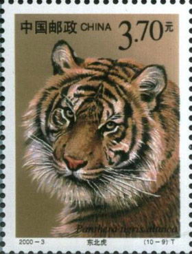 上世纪以来,由于人类经济活动的发展,虎的生存条件受到严重威胁,使虎的数量急剧下降。为唤起人们对虎的保护意识,1979年7月20日发行《东北虎》特种邮票,全套3枚,图案分别为“岩谷回声”、“呼应原野”和“喧啸草莽”,画面上共有栩栩如生的5只东北虎;2004年8月23日发行《华南虎》特种邮票,全套2枚,第一枚图案为一只华南虎虎头的特写;第二枚图案为一大一小的两只母子华南虎。