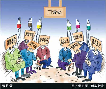 节后上班的第一天,很多人感染了节日病,长假没过完一些医院里,颈椎病、感冒、胃肠过敏和生物钟紊乱等病症的就诊率就有所增加,这些麻烦找上您了吗?