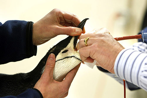 12月4日,美国俄亥俄州灰蓝辛辛那提动物救治中心,一只来自罗德岛纽波特水族馆的雄性南极帽带企鹅Tica正在接受癌症治疗。Tica已经在这里接受了数周的放射性治疗,它患了扁平细胞癌。