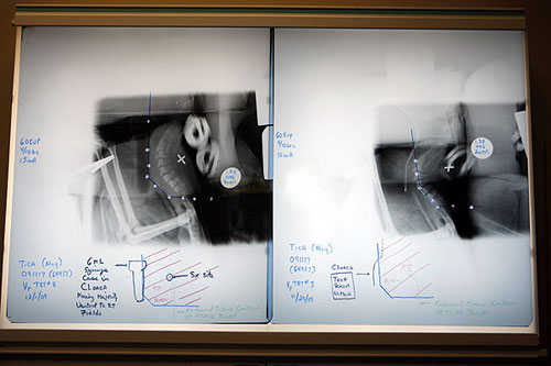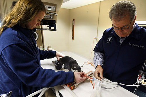 12月4日,两名兽医正在观察接受了治疗后的Tica的各项数据。
