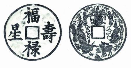 而在历代花钱中,“福”字钱占了很大的比重,如“福寿双全”、“福寿康宁”、“福寿长春”、“福寿齐天”、“福禄寿星”等,有150余种。这种“福”字钱质地大多用铜铸成,但也有少数用金、银、铝金属铸成。形制以方孔圆形为主,刻有不同风格的花纹、图案、文字,铸造工艺多样,通常都非常精美。
