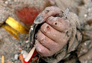 最先挖出来的是她母亲,已经停止了呼吸。她相信,其他亲人还活着,又继续挖。挖出来6岁的大儿子,也死了,犹有余温的小脸上蒙满了尘土。