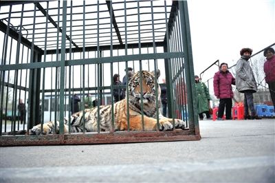不过,据现场观众描述,这个猛兽组成的讨债团举止很是文明。就拿那只一岁多的东北虎来说,它不过在仅能容身的铁笼里来回走了一番。到第二天下午,它忍不住呼呼大睡起来。“估计折腾了一晚上太困了。”一旁的饲养员解释道。