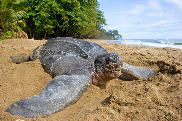 革龟准备返回大海(图片提供:Brian Hutchinson, Conservation International)