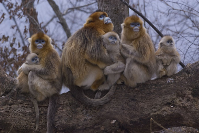 中国有着全世界四种金丝猴中的三种,其中以毛色金黄、长尾仰鼻的川金丝猴分布最为广泛。四川的岷山、邛崃山、凉山,湖北的神农架以及陕西的秦岭都是川金丝猴的重要分布地,它们栖息在海拔1500至3200米的森林中,以花果嫩芽以及树干上的松萝、苔藓为主要食物。川金丝猴有着清晰的社群结构,它们的行为往往令我们为其家族的温馨而感动。摄影/ 钱寿春