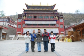 新藏经楼高25米,雕梁画柱,巍峨壮观,是由李嘉诚先生捐赠500万元,塔尔寺自筹1000万元,于2007年修葺完成的。塔尔寺的佛像、建筑、装饰往往是在历代高僧大德的主持下,经历数年乃至数代,融合了不同民族、地区、人士的财力、物力凝聚而成的,在这座庄严的建筑前,我们又一次欢喜合影,祈愿每个人都启发内心智慧,世界一片祥和。