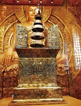 佛顶真骨保存在阿育王塔内的金棺银椁中 图片来源:资料图