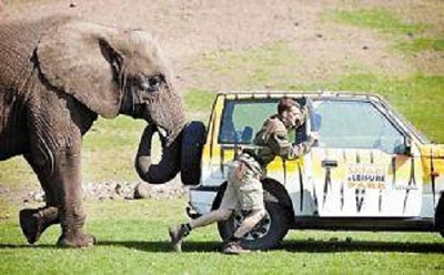日前,英国一个野生动物园内上演了令人惊奇而又温馨的一幕:一头大象帮助一辆汽车脱离困境。据悉,这辆汽车突然因故障不能发动,正当大家一筹莫展的时候,一头名为“five”的18岁非洲象走了过来,用自己粗壮的鼻子里贮存的水喷向满身污垢的车身,还卷起一块海绵,煞是专业的“清洗”起汽车的窗户,并且帮助人们将汽车推出了围栏。