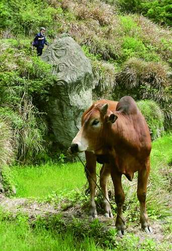 也有人认为,这些巨石不是生殖器崇拜,而是“牛崇拜”。“发现的石刻图案中,有不少呈蹄形或圆形,与牛蹄大体相近。而附近村民对梯田中的那块楔形巨石一直沿用金牛石的称谓,也可以说明这点。”