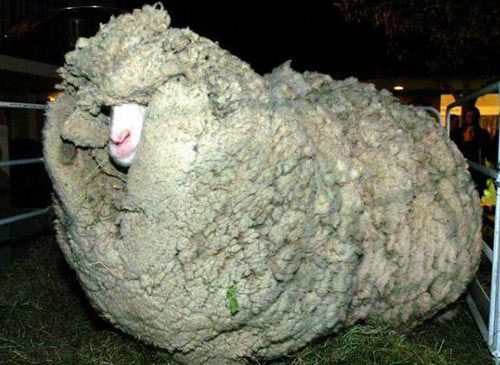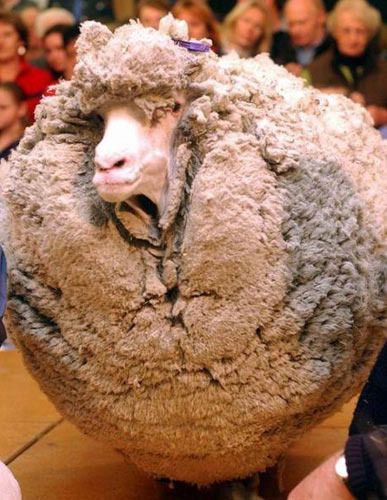 这只羊有6年没有剪过毛了,估计狼看见它都没兴趣!