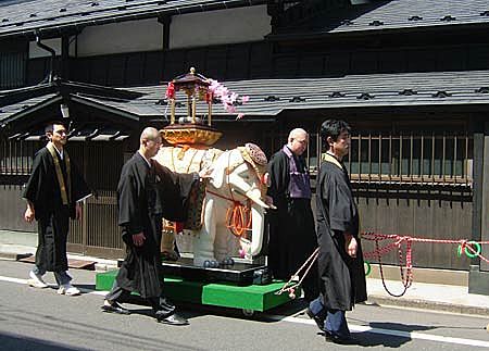 “花祭” 在日本最初多盛行于净土宗的寺庙,到今天已经成了对四月八日一个普遍使用的称谓。到了这一天,日本各地的寺庙都在庙中搭起花堂,上面饰以用鲜花编成的花顶,在浴佛盘中安置上佛像,以备参拜的人手执竹勺舀起甘茶浴佛。日本“花祭”最有名的是大阪四天王寺由佛教各界联合举办的“花祭”。规模大,参加的人多。届时寺内僧人把释迦像和白象安置于石头舞台上,供信者灌佛之用。后来又加上了孩子们这一天在这里举行牵手游行的仪式,人气就更旺了。