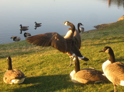 猎人利用这种群居特性捕杀大雁。话说当年,金代诗人元好问去并州赴试,途中遇到捕雁者,猎人设网捕雁,捕得一只杀死,但一只脱网而逃。岂料脱网之雁并不飞走,而是在他上空盘旋一阵,然后投地而死。元好问得此情景,一时心绪难平。便写下了脍炙人口的词“问世间、情为何物,直教生死相许?天南地北双飞客,老翅几回寒暑”。一双雁的贞烈感动了一个词人,一个词人的感慨问住了我们所有人。