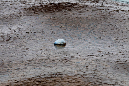 英国石油公司总裁麦凯2日接受美国广播公司“本周”栏目采访时说,公司工程人员正在建造一个大型罩状装置,有望于6天至8天内安装在事故油井上方。该装置设计高12米,重74吨,可将泄漏石油留在罩内,避免原油流入海中。装置收集到的石油可由泵抽出。图为当地时间5月3日,美国Chandeleur Sound,一只被泄露石油污染致死的水母。