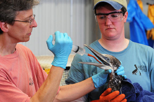 当地时间5月1日,三州鸟救援与研究和国际鸟类研究中心的工作人员抢救受到石油污染影响的海鸟。