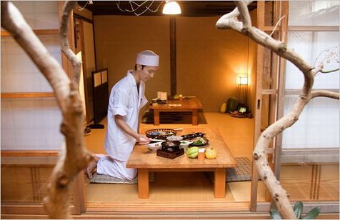 一家名为“安房”的餐厅提供“怀石”料理,这种料理极端讲求精致,连餐具都格外讲究。