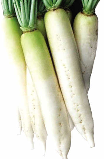 白萝卜:生吃可促进消化,其辛辣的成分可促胃液分泌,调整胃肠功能。另外,所含丰富的粗纤维,能促进胃肠蠕动,保持大便通畅。(许 峰)