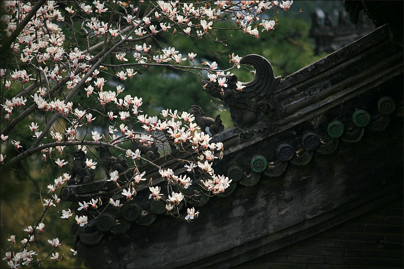 “人间四月芳菲尽,山寺桃花始盛开。”当城里残花落红正化为春泥之时,京郊的山谷和寺庙百花吐艳,又成了赏花之地。距北京城50公里的潭柘寺以两株玉兰树著名,玉兰花一直要开到五月,传说这两株美丽的紫玉兰已有400年树龄。以人心度树心,人们用了大乔小乔两位美人来给两株紫玉兰命名。玉兰花开时节,遮天蔽日,分外妖娆。近邻潭柘寺的戒台寺,以拥有20多棵树龄超过200岁的古丁香而闻名。丁香花开时,寺里香气袭人,游人如织,一时让人分不清山中古寺和山外红尘。